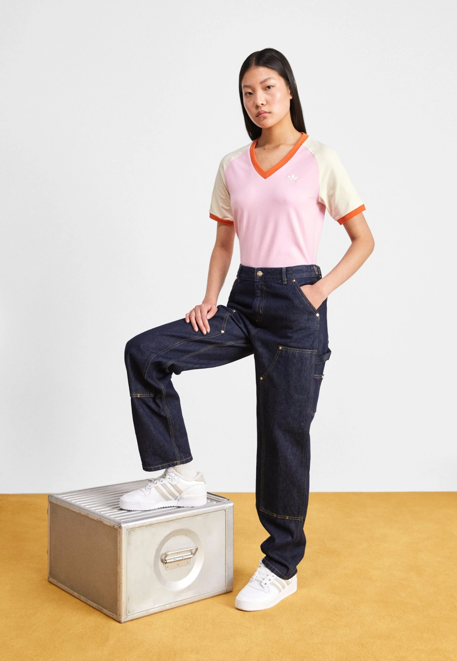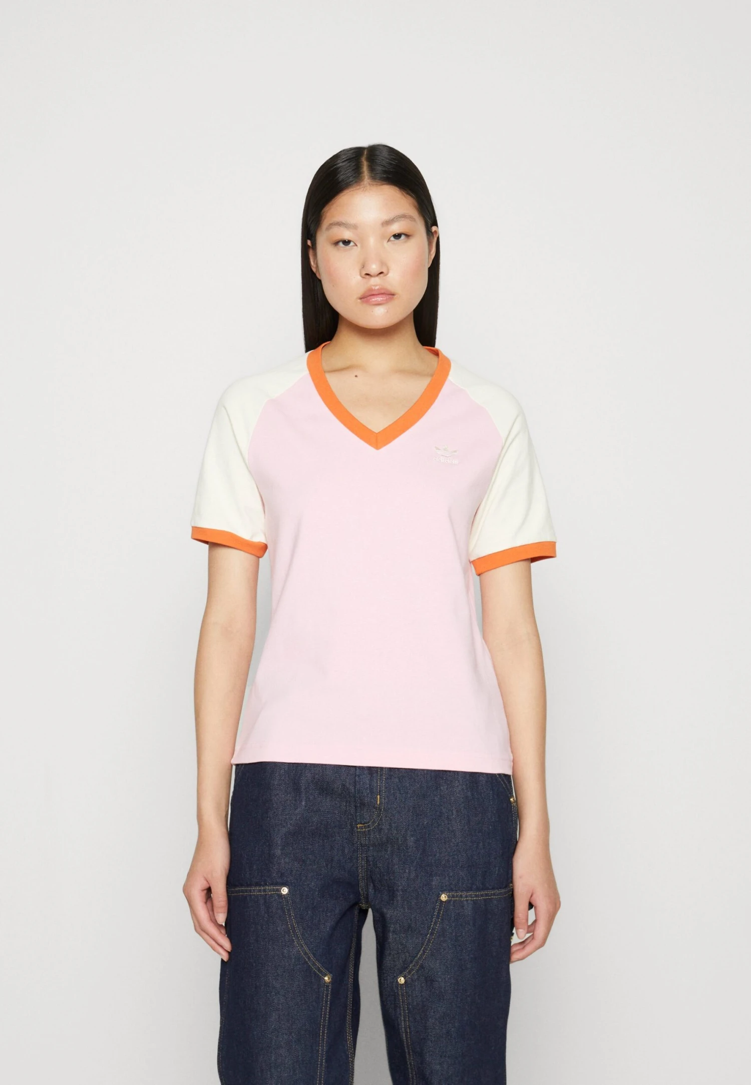 Adidas Originals Adicolor 70S Cali Tee V Neck – T-Shirt Basique – True Pink
