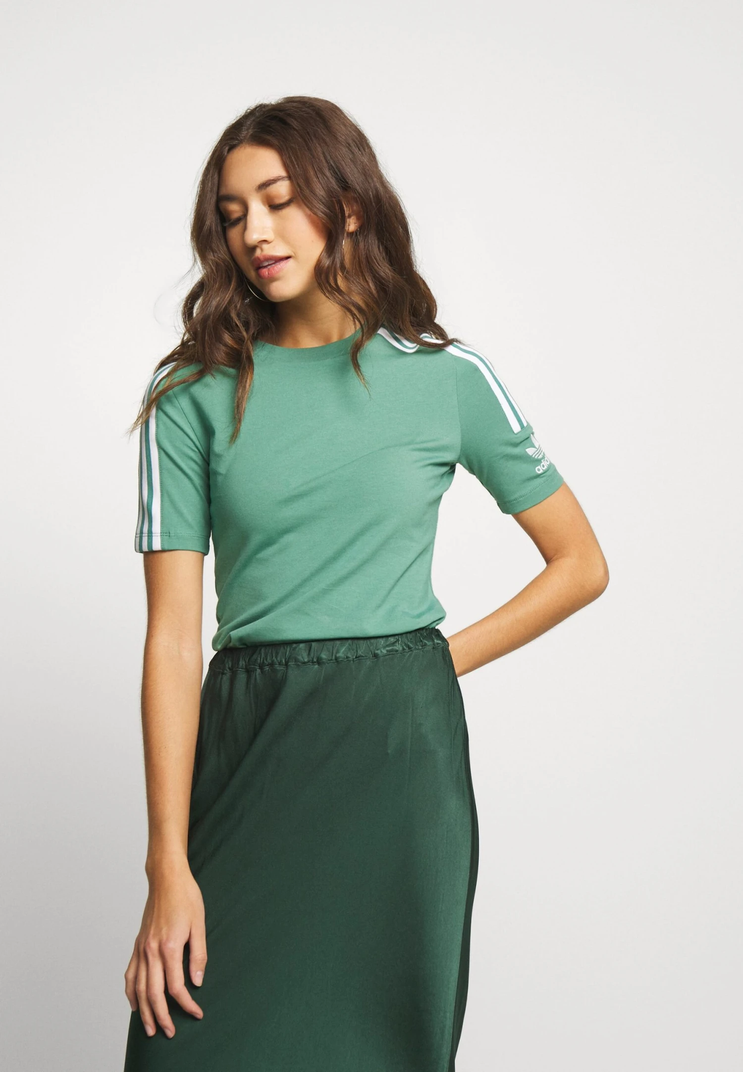 Adidas Originals Adicolor Tight Fit Short Sleeve Tee – T-Shirt Imprimé – Future Hydro/White
